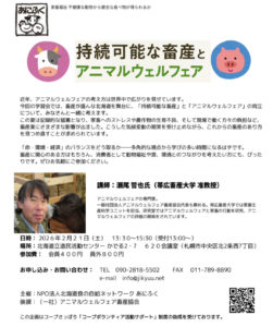 「持続可能な畜産とアニマルウェルフェア」近年、アニマルウェルフェアの考え方は世界中で広がりを見せています。今回の学習会では、畜産が盛んな北海道を舞台に、「持続可能な畜産」と「アニマルウェルフェア」の両立について、みなさんと一緒に考えます... -